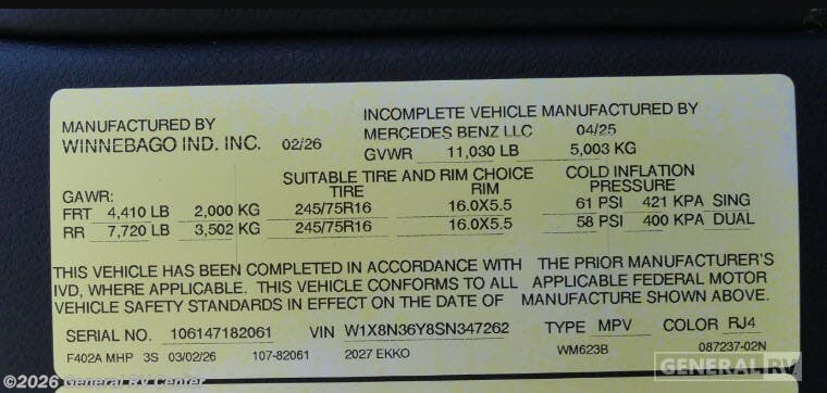 Looking to buy a 2027 Winnebago Ekko Class C RV?