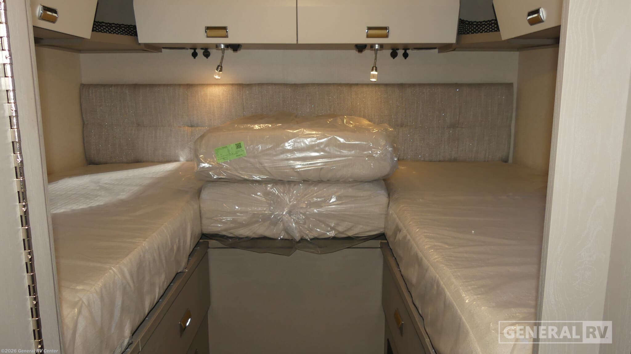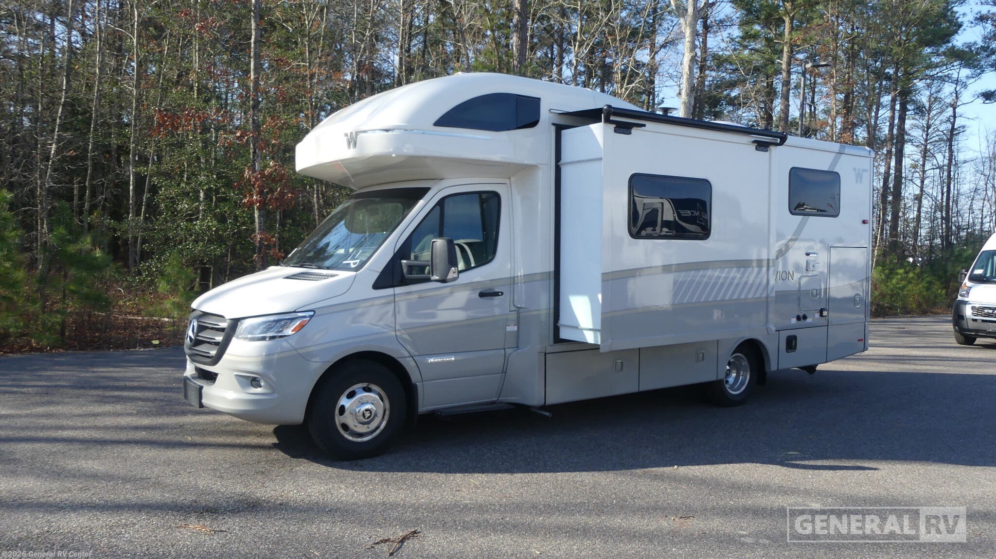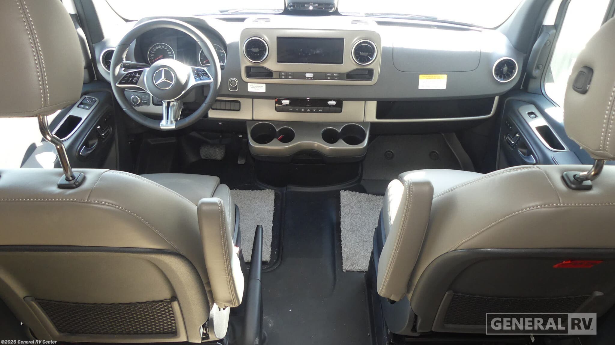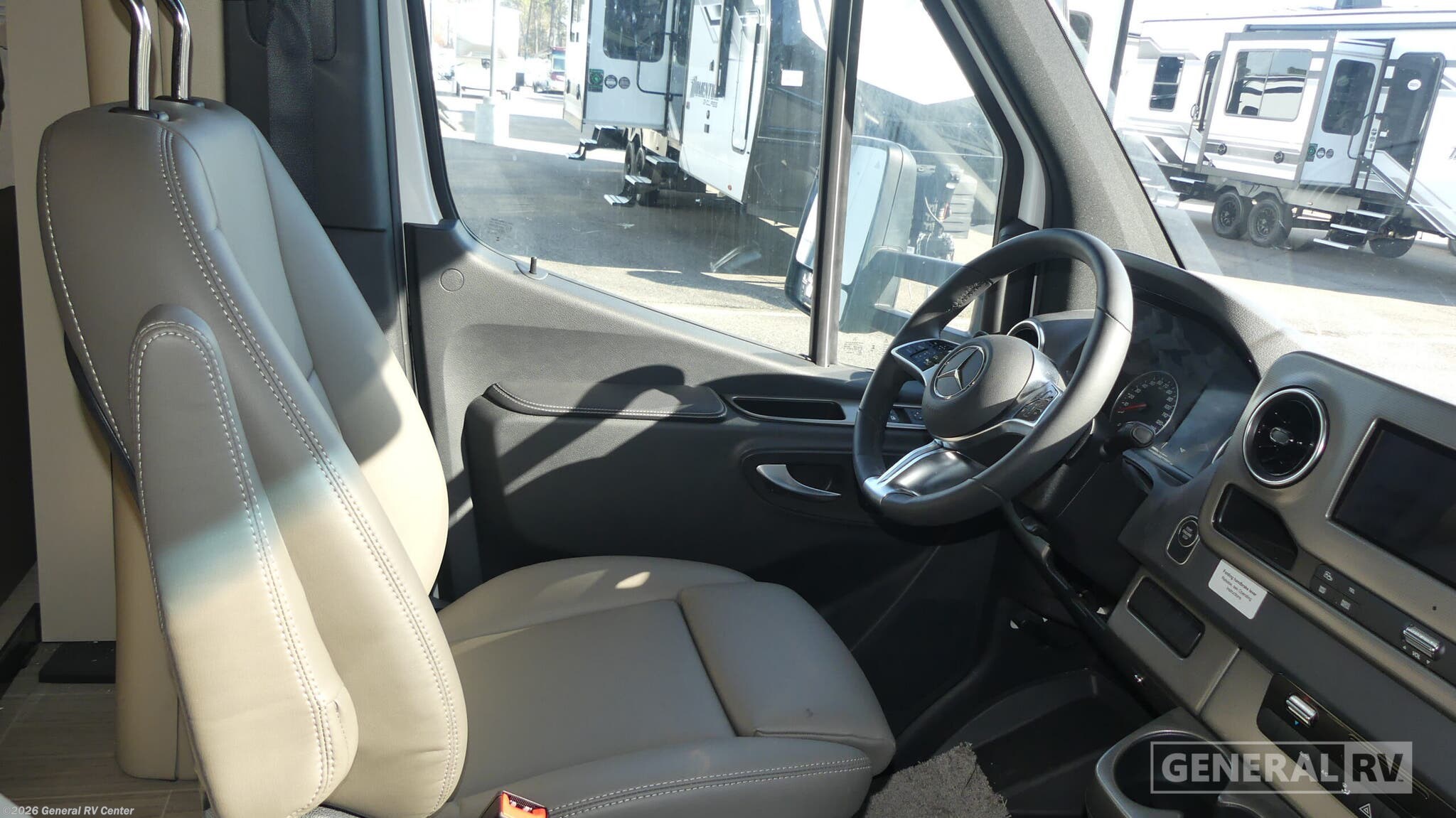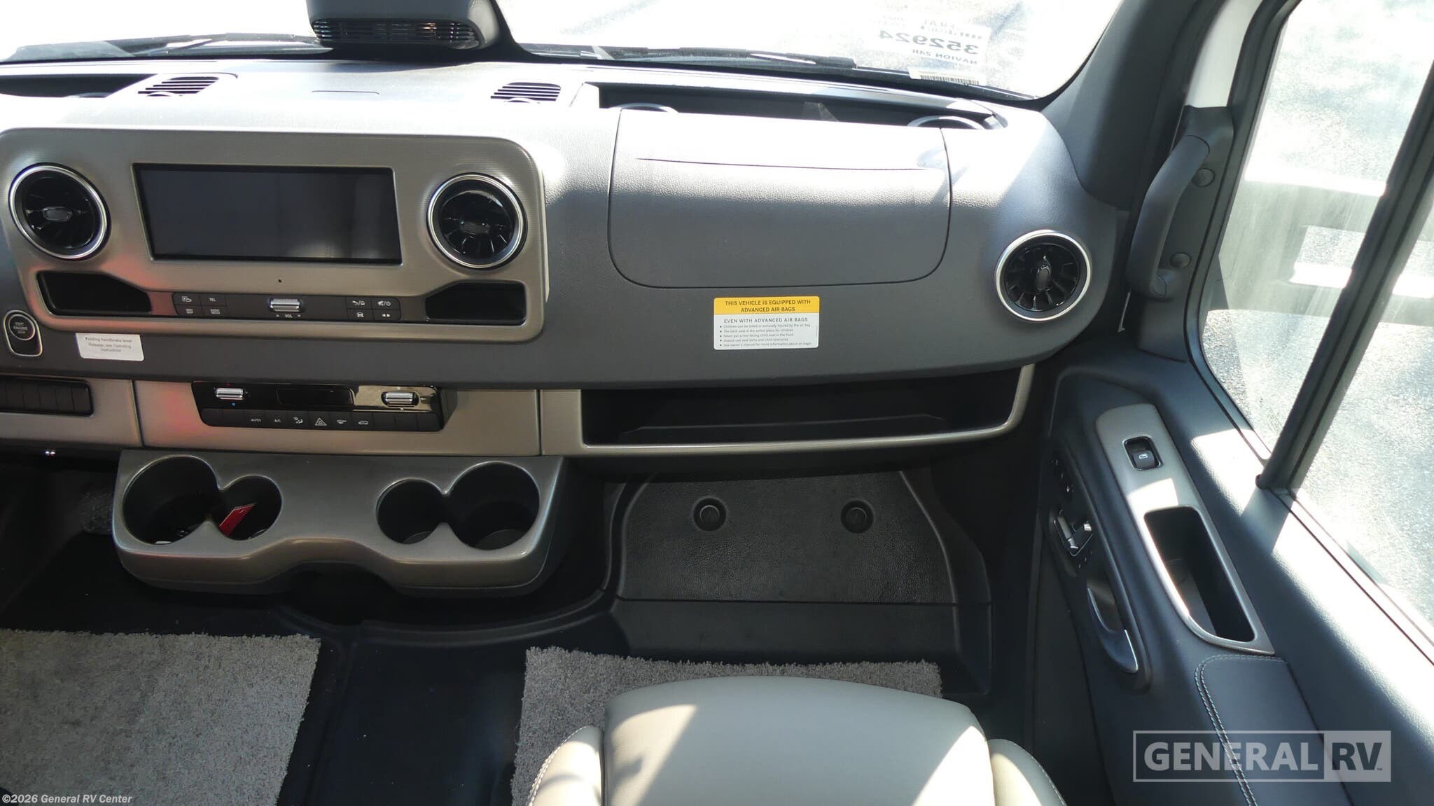 **Winnebago Navion Class C diesel motorhome 24R highlights:** - Rear Twin Beds with King Conversion - TrueComfort+ Sofa - Swivel Cab Seats - Bunk Over Cab - Gear Garage Below Rear Bedroom This is the perfect coach to travel with your honey or hiking buddy since there are two 32" x 76" twin beds in the back that can convert to a king-size bed if you choose! And the TrueComfort+ sofa with a movable pedestal table plus the cabover bunk will provide additional sleeping space. You can choose the optional low profile front cap with storage if you do not need the added sleeping space. There is a 25" x 30" shower across the hall from a private toilet and sink so two people can freshen up at once. You will also be able to create meals each day since there is a two-burner cooktop and convection microwave, and the 12V refrigerator will keep cold items fresh! With each Navion Class C diesel motorhome by Winnebago, you can extend your trips off grid with the two 120W solar panels, one 320-amp-hour 12V Lithionics lithium battery, 2,000W inverter, plus the dedicated 280-amp second alternator to charge the coach batteries. An optional RVMP 3800W LP generator is available for even more power features. The optional generator is not available with the Generator Replacement Package; see dealer for more details! The Navion is built on a Mercedes-Benz RWD Sprinter chassis with optional AWD, and the MBUX touchscreen infotainment system has intelligent voice control, navigation, a Wi-Fi hotspot, and more! The interior offers luxury space and simple solutions for storage, plus it also has vinyl flooring and laminate countertops for easy clean-up.