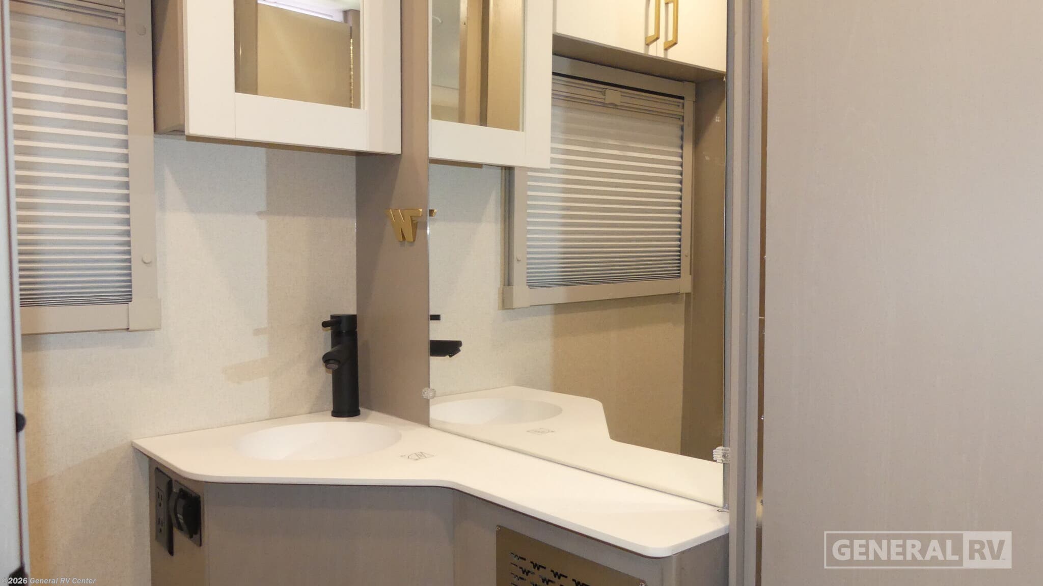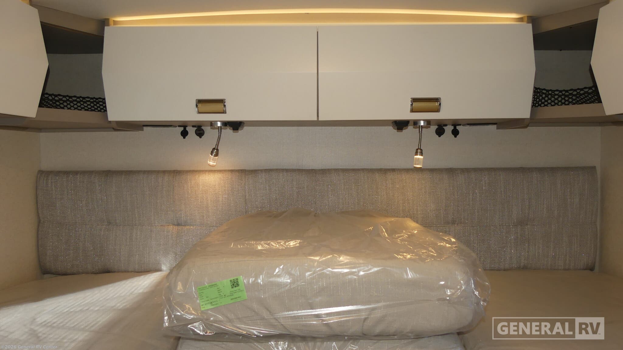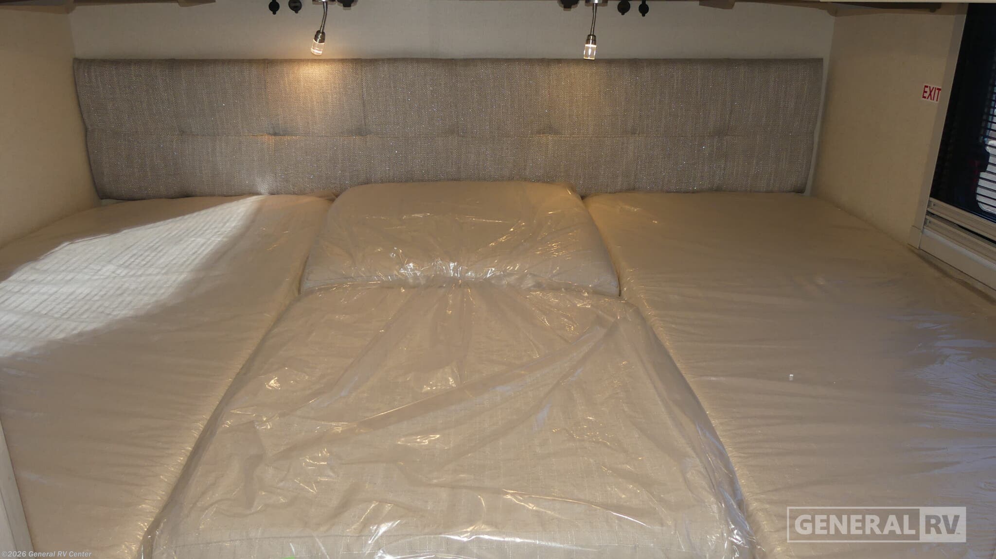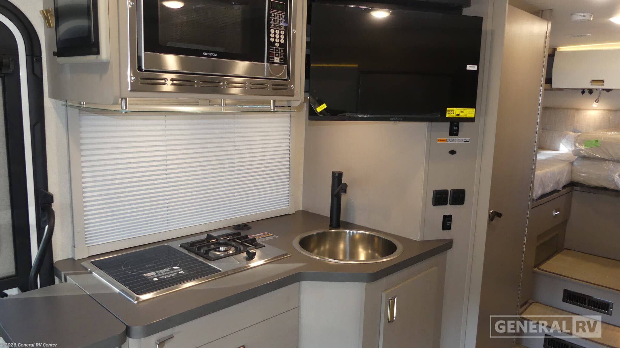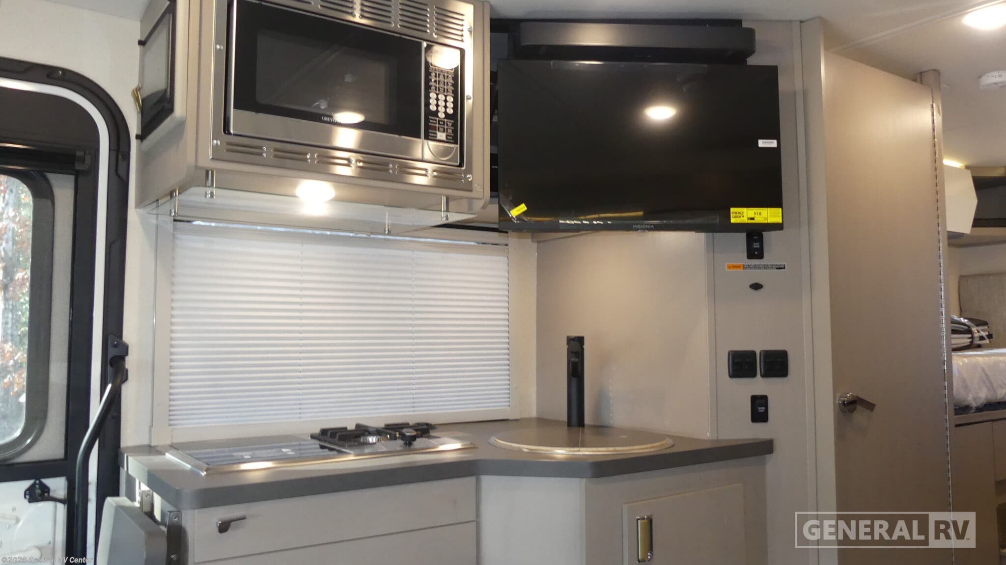 **Winnebago Navion Class C diesel motorhome 24R highlights:** - Rear Twin Beds with King Conversion - TrueComfort+ Sofa - Swivel Cab Seats - Bunk Over Cab - Gear Garage Below Rear Bedroom This is the perfect coach to travel with your honey or hiking buddy since there are two 32" x 76" twin beds in the back that can convert to a king-size bed if you choose! And the TrueComfort+ sofa with a movable pedestal table plus the cabover bunk will provide additional sleeping space. You can choose the optional low profile front cap with storage if you do not need the added sleeping space. There is a 25" x 30" shower across the hall from a private toilet and sink so two people can freshen up at once. You will also be able to create meals each day since there is a two-burner cooktop and convection microwave, and the 12V refrigerator will keep cold items fresh! With each Navion Class C diesel motorhome by Winnebago, you can extend your trips off grid with the two 120W solar panels, one 320-amp-hour 12V Lithionics lithium battery, 2,000W inverter, plus the dedicated 280-amp second alternator to charge the coach batteries. An optional RVMP 3800W LP generator is available for even more power features. The optional generator is not available with the Generator Replacement Package; see dealer for more details! The Navion is built on a Mercedes-Benz RWD Sprinter chassis with optional AWD, and the MBUX touchscreen infotainment system has intelligent voice control, navigation, a Wi-Fi hotspot, and more! The interior offers luxury space and simple solutions for storage, plus it also has vinyl flooring and laminate countertops for easy clean-up.