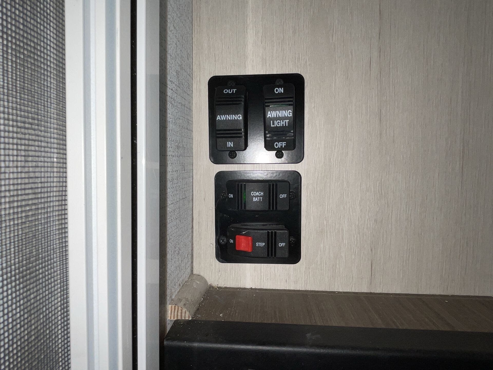 Awning, Backup Monitor, External Shower, Hitch, Keyless Entry, Ladder, Leveling Jacks, Pass Thru Storage, Roof Vent, Screen Door, Skylight, Slideout -