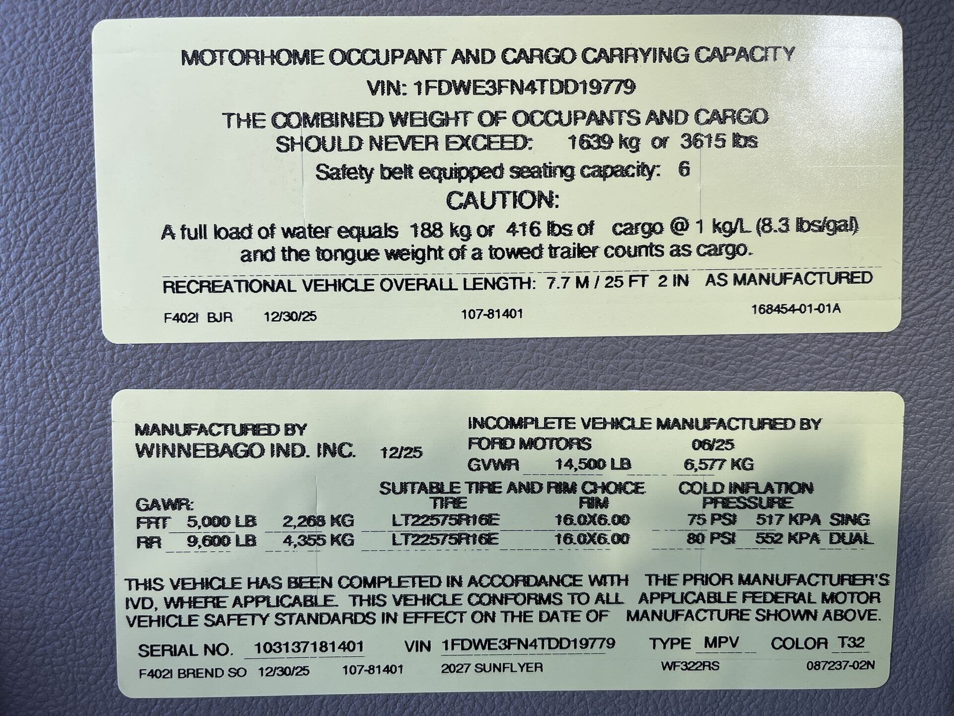 Request More Info on this 2027 Winnebago Sunflyer 22RS Offered for sale by McClain's RV Superstore