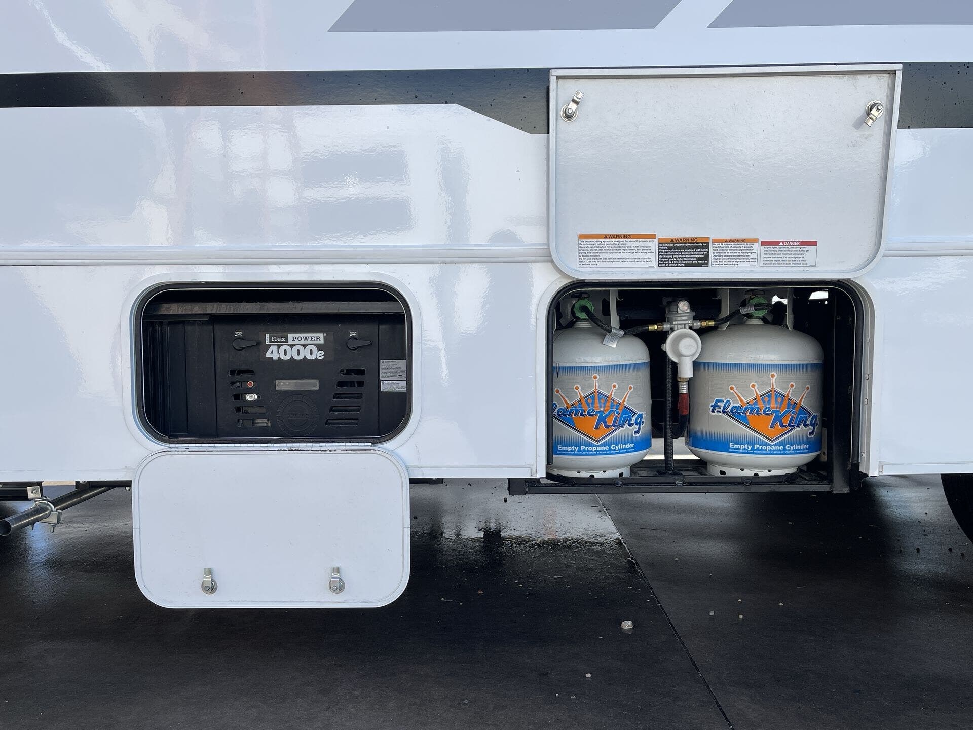 Backup Camera, CO Detector, Fire Extinguisher, LED Lights, LP Detector, Propane, Smoke Detector, TV, TV Antenna -