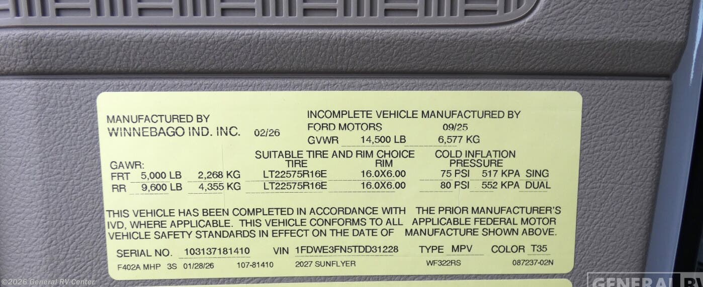 Looking to buy a 2027 Winnebago Sunflyer Class C RV?