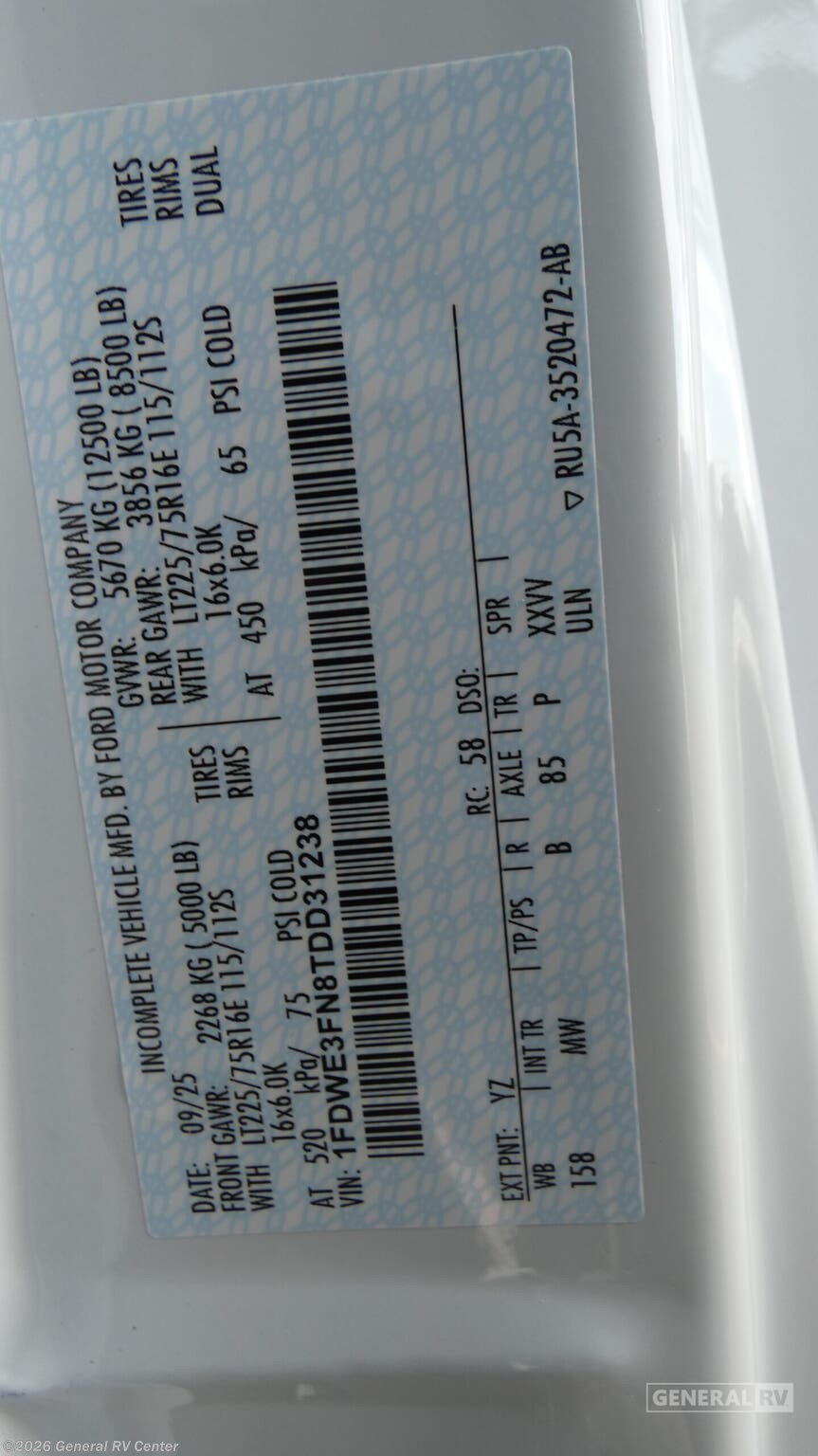 - VIN1FDWE3FN8TDD31238