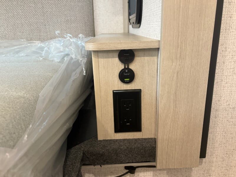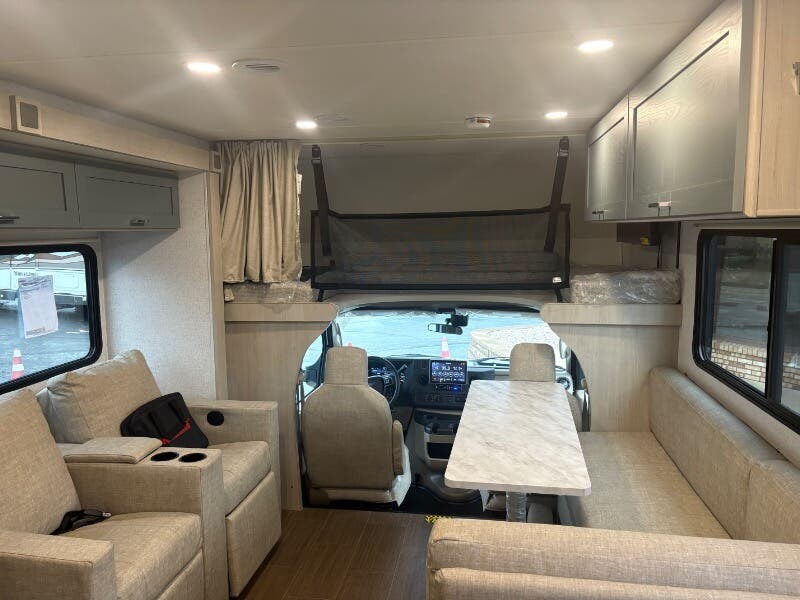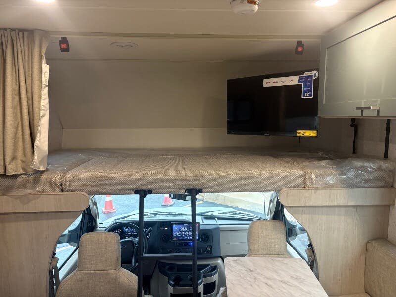 The 2026 Winnebago Sunflyer 26FE is a remarkable Class C RV that exemplifies comfort and innovation, designed to elevate your travel experiences on the open road. Under the hood, you'll find a robust 7.3L V8 gas engine capable of producing 350 horsepower, featuring a TorqShift 6-Speed Automatic transmission with overdrive. Complemented by a sturdy Ford E450 chassis, this vehicle ensures a smooth and powerful drive, perfect for long journeys. Safety and convenience are at the forefront of the Sunflyer's design. Key features include: - Rear airbags for enhanced safety - 4-Wheel ABS brakes ensuring reliable stopping power - Automatic emergency braking for added protection - Hill start assist to ease your start on inclines - Automatic headlamps and high-beam control for optimal visibility - Side-mirror camera and rear color camera for better navigation and awareness The cabin is equipped with: - Remote keyless entry for ease of access - Power door locks and windows for added security - Sunvisors and cab window folding privacy shades for enhanced comfort - An 8.95-inch radio Bluetooth touchscreen monitor with Apple CarPlay, Android Auto, and Sirius XM for entertainment and connectivity The interior of the Sunflyer brings warmth and practicality with: - A power patio awning with LED lighting for outdoor enjoyment - Heavy-duty vinyl flooring for durable cleanliness - A convertible sleep dinette to maximize space usage - A stainless steel sink alongside a 2-burner cooktop Electronics and lighting are thoughtfully designed with: - Systems Center with multiplex controls - LED interior lighting for an inviting atmosphere - Various charging outlets including USB-A and USB-C For restful nights, the sleeping arrangements include: - A queen foam mattress with a headboard for comfort - Reading lights and nightstands for convenience The bathroom amenities include: - A flexible showerhead and foot flush toilet - A lavatory cabinet and mirror for your grooming needs Mechanical aspects are robust with features such as: - Solar prep and removable LP tanks for efficient energy use - 30-Amp service cord and 1000w inverter for electrical needs - On demand water pump for readily available water supply Constructed with a premium high gloss fiberglass exterior, the Sunflyer also features a molded front cap and a rear ladder for easy roof access, along with lighted storage compartments for convenience during travels. The Winnebago Sunflyer 26FE is a blend of innovation, comfort, and utility, making it an excellent choice for those seeking adventure without sacrificing the comforts of home. ??
