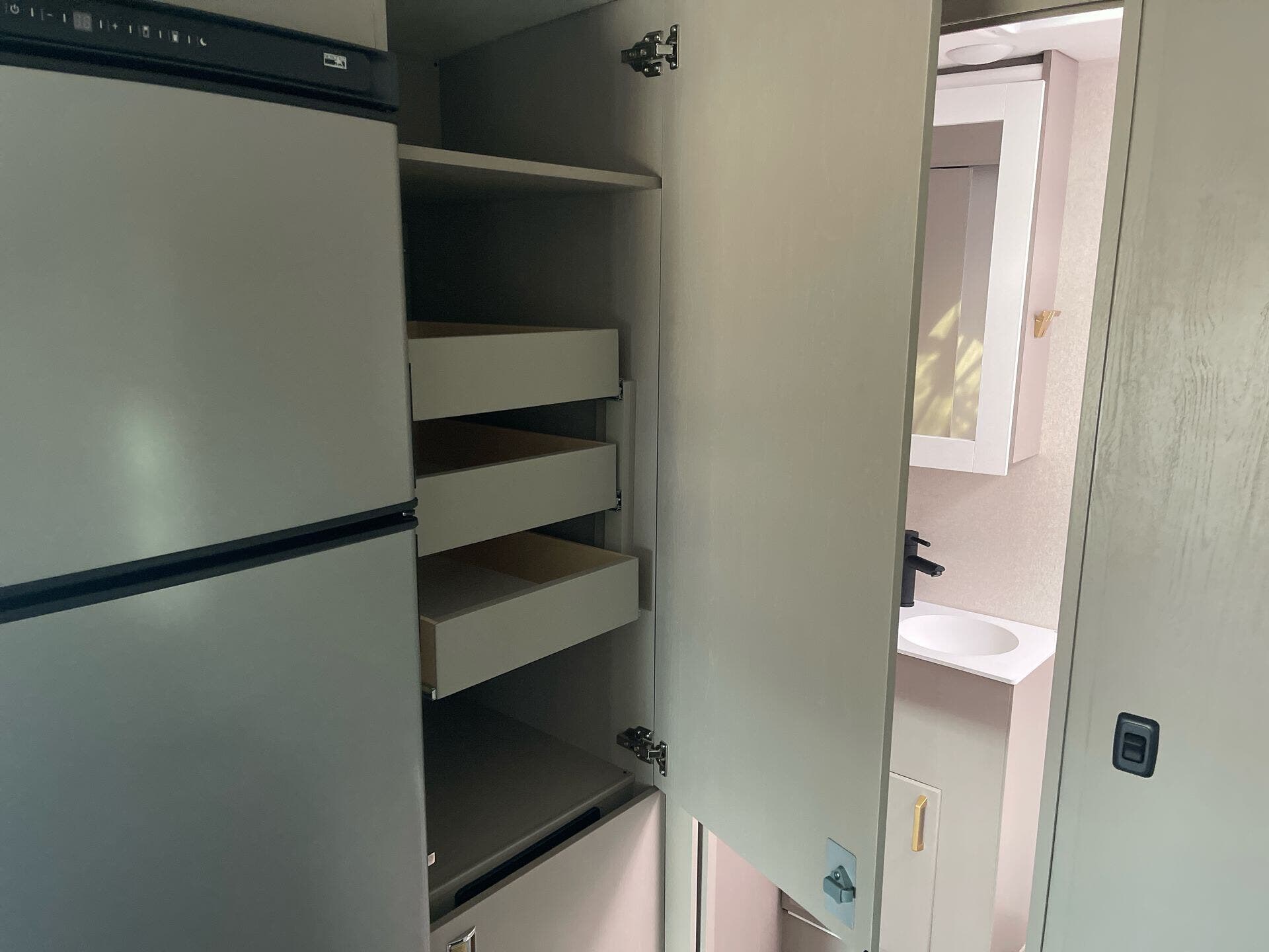 - Full kitchen: oven, microwave, refrigerator, and a dedicated pantry for extended trips