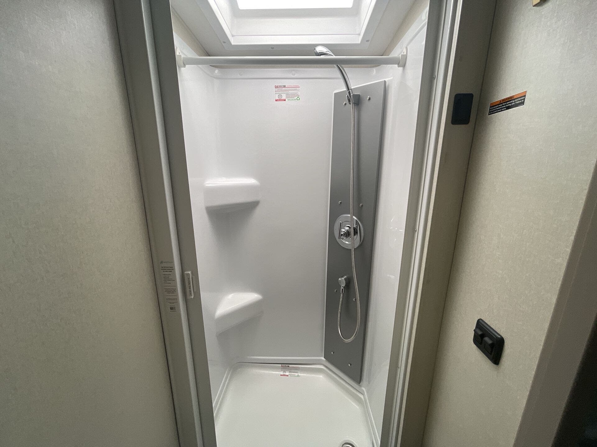 - Bath essentials: shower and toilet with medicine cabinet for convenience on the road