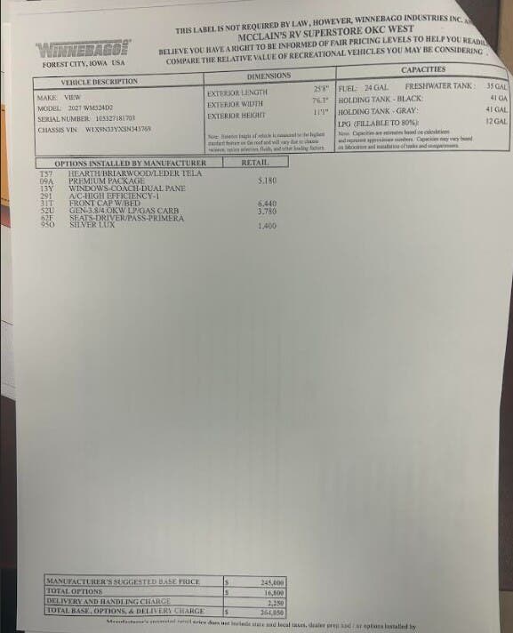 Request More Info on this 2027 Winnebago View 24D Offered for sale by McClain's RV Oklahoma City