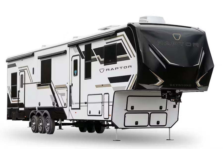 A 2026 Keystone Raptor 428 has 3 slideouts. Find a Keystone Raptor for sale on RVUSA!