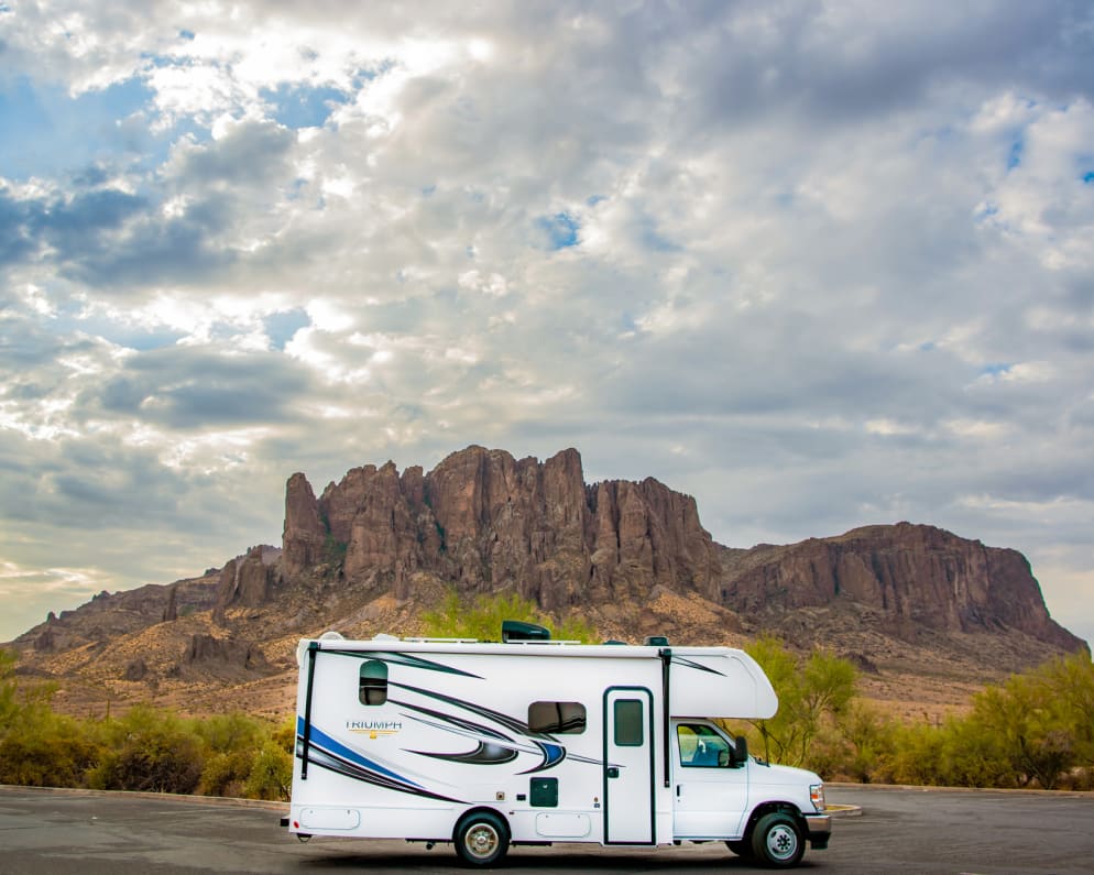 The Nexus Triumph 24TS is packed with features that make even the most discerning traveler swoon. The sleek exterior and aerodynamic profile compliment the functional interior: a spacious bathroom, queen sized bed, an over- the -cab bunk for the kids or extra guests, a spacious banquette dining area, a roomy kitchen, high-end finishes throughout and huge storage compartments. From its spacious living area and fully equipped kitchen to its comfortable sleeping quarters and spa-like bathroom, this motorhome has everything you need to live the life of luxury on the road. Sleep Comfortable, roomy mattresses Professionally cleaned linens One Rumpl synthetic down comforter per bed One sheet set per bed (pillowcases plus top & bottom sheets) Cook One frying pan One saucepan Kitchen utensil kit Cutting board Dinnerware and flatware Glasses Percolator coffee maker, filters and mugs Explore Unlimited mileage Full tank of fresh water (30 gallons) Full tank of diesel (24.5 gallons) Empty grey water tank (41 gallons) Empty black water tank (41 gallons) Relax One camp chair per traveler Rumpl comforter doubles as a cozy camp blanket Professionally cleaned bath towels One towel set per traveler (hand towel, bath towel and wash cloth) Clean Broom and dustpan Dish towels Dish and hand soap Two rolls of toilet paper Rubber gloves Hoses for fresh, grey and black water And More User manuals First aid kit 30 amp charging cable with 110v converting plug...