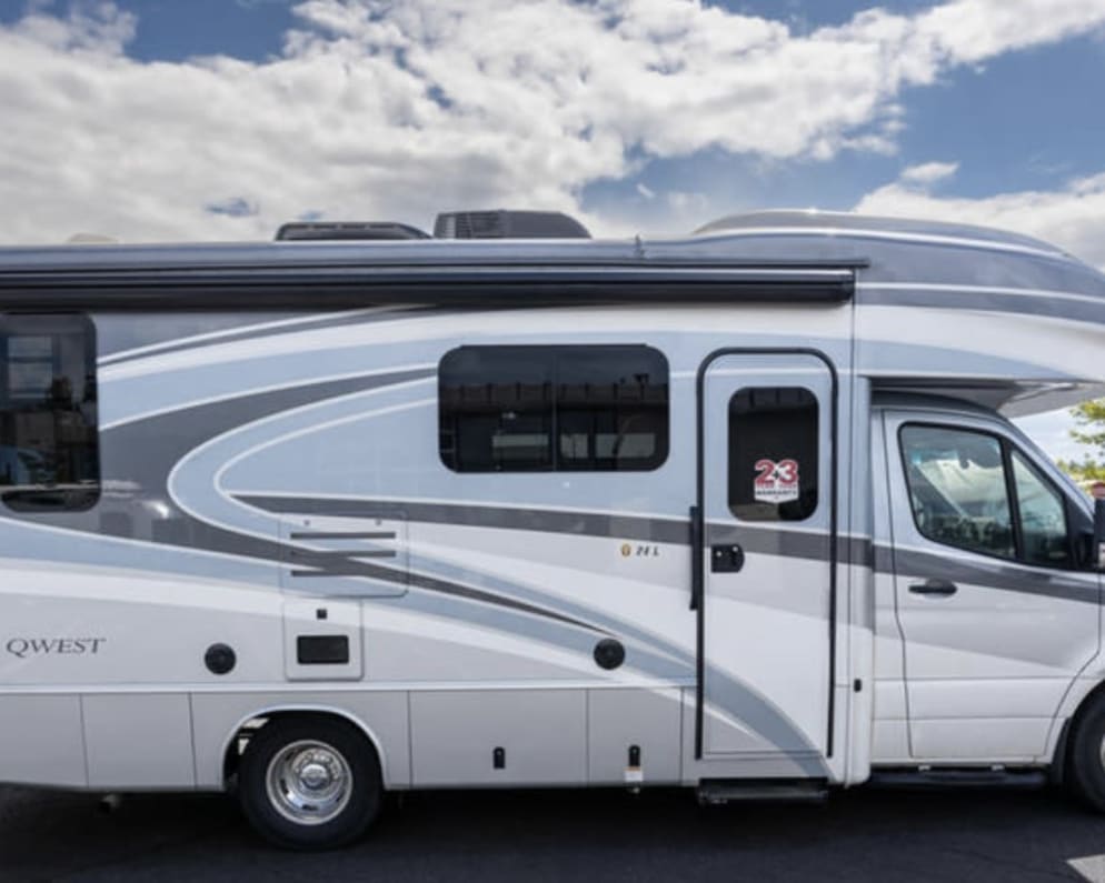 Howard the Yeti is ready to take you on your next luxe adventure! Ever wish for the size of a van but the space of a motor home? Howard is your guy. He is a brand new 2023 Entegra Qwest 24L Coach. This beautiful RV is built on the popular Mercedes Sprinter frame, but is a class C Coach with all the space and amenities. It's nimble and easy to park, but still with enough room so you aren't tripping over your family. It has all the fancy bells and whistles you expect from Mercedes to make your trip smooth and easy and make this RV as easy to drive as your car. The Coach features a queen sized bed in the bedroom. You’ll snuggle up in Beddy’s exclusive zip bedding, so you’re ready to sleep as soon as the slide is out. There is an overhead bunk area that can sleep two, and the dinette folds down into a bed as well. You can easily fit five in this great little space. We want you to have an amazing trip with your group, so this coach is equipped with everything you need to make memories. Cooking gear, premium linens, and fluffy towels are already stocked. Challenge your family to a game with our stock of favorites. Watch a movie on the included Roku player, or get outside and enjoy the provided chairs and ground cloth while you stay cool under the armless awning. Integrated propane tanks and generator make boon docking or camping without hookups a breeze. Vacation should be easy, so expect your Coach to be delivered with all fluid levels full and ready to roll....