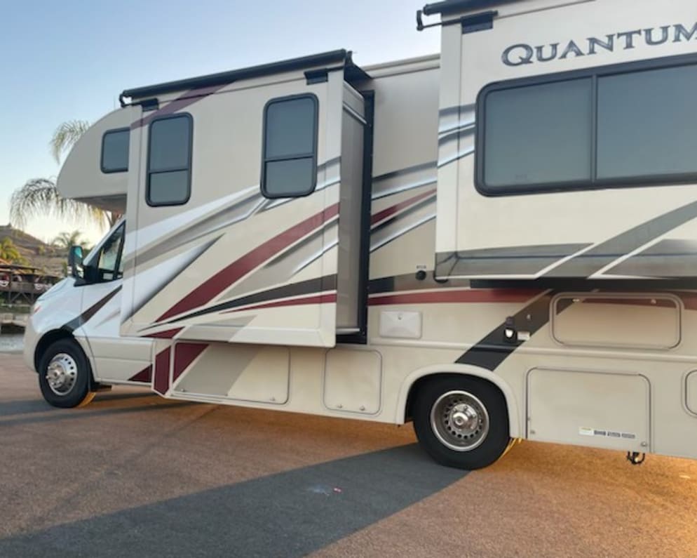 After traveling with every type of RV, we have discovered the value of enjoying the journey to a location as much as the destiny itself. Driving a RV with a diesel Mercedes chassis is pleasurable from start to finish, including the set up. Our RV has super low mileage, drives like a big SUV and parks easily in tighter spaces. Upon entry, the interior displays all the amenities from the top bunk bed with a sky window for star gazing which sits above the driver and passenger seat. The dinette table flips into another sleeping space, there are two reclining movie lounge chairs facing a TV monitor. There’s a small kitchen with sink, stovetop and a microwave. The refrigerator is at the left upon entry with pantry shelves following it. The bathroom is simple and efficient with a full shower. The bedroom has a full size bed with a TV. With the two slides extended, it is like traveling in a mobile studio apartment. This unit is compact, but for the space required per mission, this RV incorporates the most functionality in a drivable motorcoach. Our RV is equiped with a GPS tracking devise, so please share your destination with us and let us know how many people you plan on traveling with (including pups). WE CHOOSE TO ACCEPT BOOKINGS SOLELY WITHIN SOUTHERN COASTAL TO CENTRAL COASTAL CALIFORNIA AND OUTSIDE OF ELEVATION & MOUNTAINOUS AREAS TO PROTECT THE LIFE OF THE RV. There are no child seat restraint anchors. We are not able to occomodate last minute reservations. ...