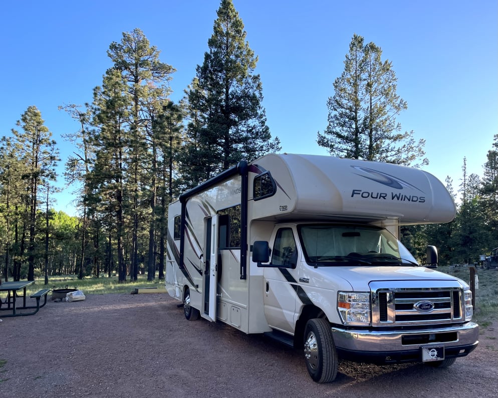 Discover the Freedom of the Open Road with Innisfree! Welcome to Innisfree, where your dream of exploring the stunning landscapes of Arizona and beyond becomes a reality. Get ready to embark on an unforgettable adventure in our exceptional 2020 Thor Four Winds motorhome. Here are the features that make it the perfect choice for your trip: Easy and Comfortable Driving: - Ford E450 V10 Triton engine that drives like a pickup truck - One-time around the block, and you'll feel comfortable behind the wheel Convenient Towing and Parking: - Impressive 8000lb towing capacity for extra gear - Back-up camera for stress-free parking and maneuvering Fully Equipped Interior: - Sleeps 6+ with a rear queen bedroom, dinette/sleeper, couch/pull-out sleeper, and large cab over-bunk sleeper - 2x televisions and a DVD player for entertainment - House radio/bluetooth stereo for your favorite tunes - Brand new Kenwood cab stereo with wireless Apple Play and Android Auto Hassle-Free Camping: - Fully stocked with camping essentials - Just bring your clothes and food - Slide-out for added interior space Abundant Storage: - Enormous rear storage for all your gear Outdoor Comfort and Convenience: - Lighted awning for shade and relaxation - Propane hookup for outdoor cooking - Outdoor shower for refreshing moments - 120v plugs (x2) for powering your devices Easy Hook-Up: - RV is 30 amp - All necessary accessories for water, electricity, and sewer hook-ups included Don't miss out on the oppo...