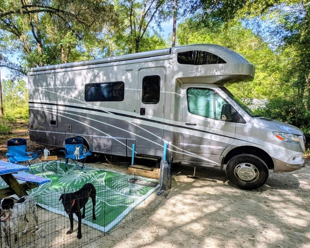 Ready to break out of the daily routine and let adventure run wild? Frolicking Flamingos, our new 2025 Winnebago View 24D, is your ticket to freedom, comfort, and easy fun — and yes, your furry co-pilot is more than welcome to hop aboard! Our Frolicking Flamingos features a spacious Murphy Bed and U-shaped dinette — so after a day of exploring sandy beaches or hidden trails, you can snuggle up, kick back, and watch a movie in total cozy comfort. Worried about driving? Don’t be. Frolicking Flamingos rides smooth and easy, even for first-timers. The Mercedes-Benz diesel chassis is fuel-efficient and loaded with smart safety features like adaptive cruise control, and lane-keeping assist — so you can relax and enjoy the ride, stress-free. When you roll in, setup is a breeze: hit one button to level her out, then another to open the slide for even more room to stretch out and settle in. Inside, there’s a roomy kitchen with plenty of counter space — perfect for whipping up breakfast or sharing a bottle of wine after a sunset stroll. Smart storage keeps all your gear tucked away, and solar panels let you wander off-grid without missing a beat. Fresh linens, dishes, cookware — Frolicking Flamingos is stocked and ready. Just pack your clothes, grab your snacks, leash up the pup, and hit the road! Whether you’re chasing sunsets along the coast, waking up in the mountains, or just seeing where the road leads, Frolicking Flamingos is your rolling happy place. Bo...