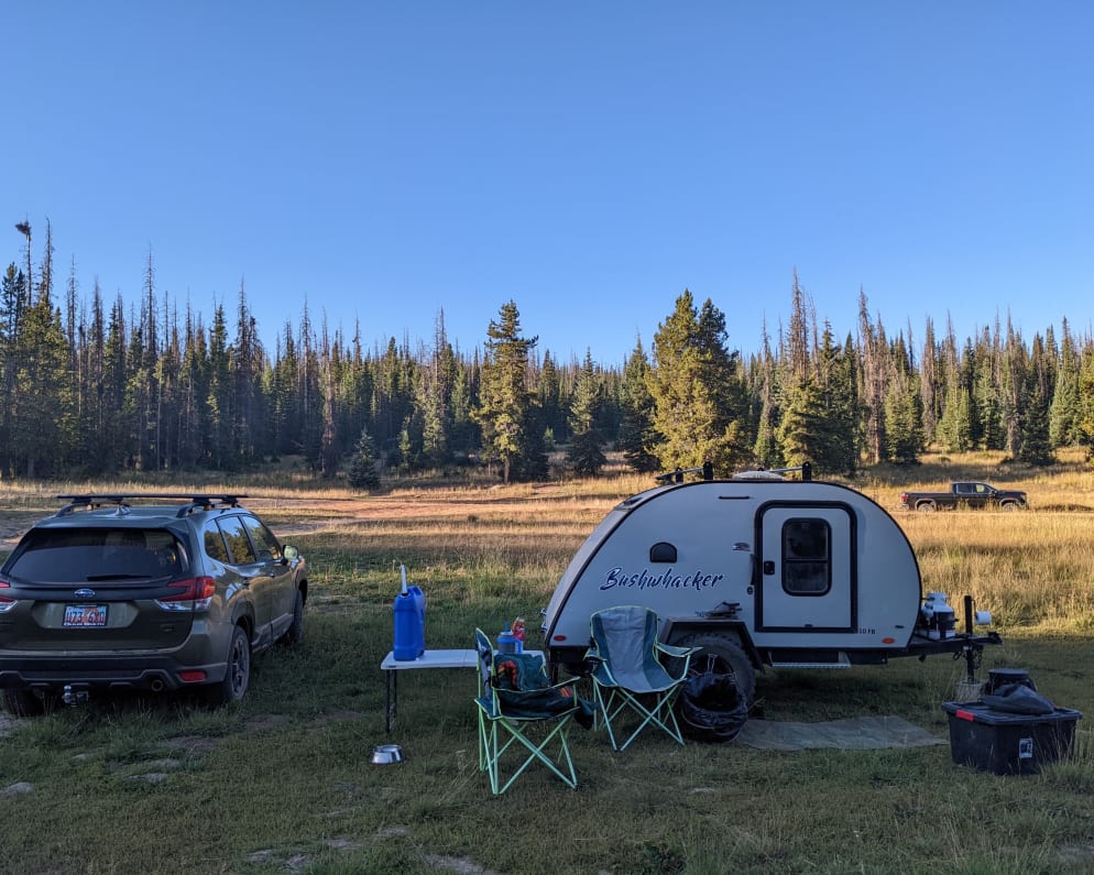 Tired of your tent? Need a simple camper set up for you and your best bud? This cozy little camper is perfect for you. Easy to tow with almost any vehicle (we have towed with Subaru Crosstrek). Details worth note: 12000 btu furnace, 21 gallon fresh water tank, interior/exterior Bluetooth stereo, multiple USB ports, propane stove, insulated cooler, and off road suspension. Rental includes filled propane tank wheel leveler block and wheel chocks. This little guy is perfect for your next adventure.