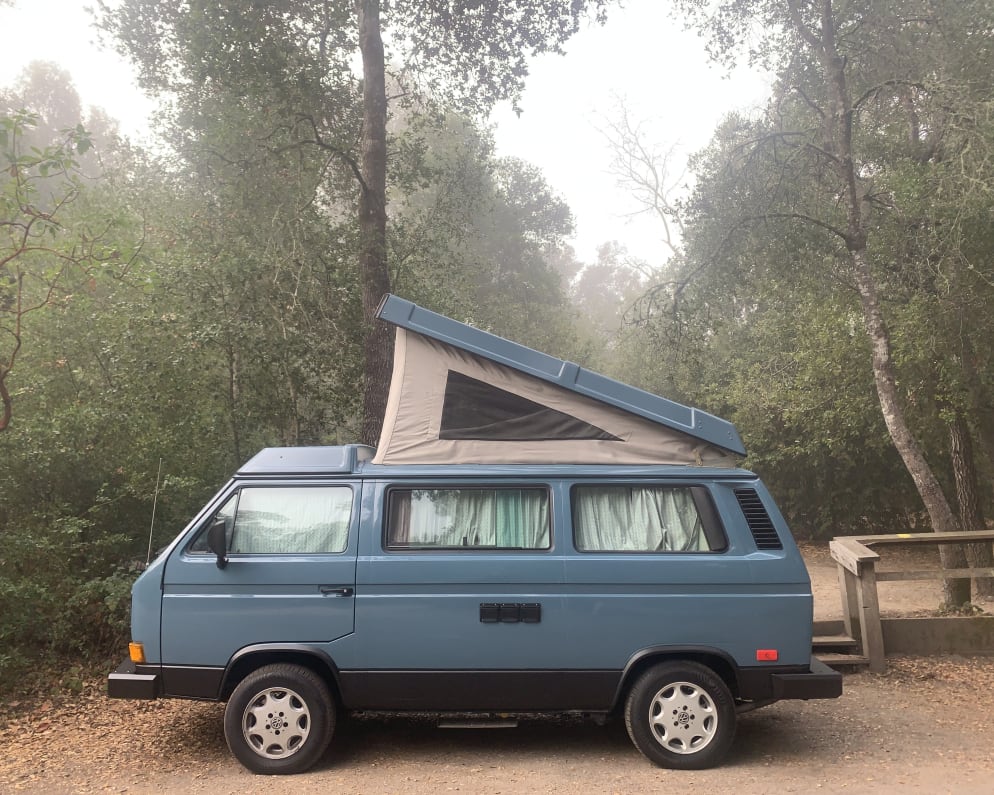 Live off the grid with this 1990 Manual Shift Westfalia Pop-Top. Well cared for and loved. Includes Subaru 2.2 L engine, lots of extras. Sleeps up to 4 adults (you really should like each other though). Potable water tank. 2 Burner stove. Dedicated Renogy solar and auxiliary lithium battery system for running electronics, fridge, and stereo. USB charging for phones. Newer leather front seats that offer more support. This vehicle is vintage and in beautiful condition. It is available to you if you are confident in your manual transmission abilities, and looking for short distance get-aways. Apologies but ONLY available for Bay Area bookings - wine country, red woods, Santa Cruz, etc. Copy and paste link for "How To Videos" (videos made prior to restoration work). https://www.youtube.com/playlist?list=PLNaw-0mNzhq35XVgLxKlGZStL_eV3qAC_